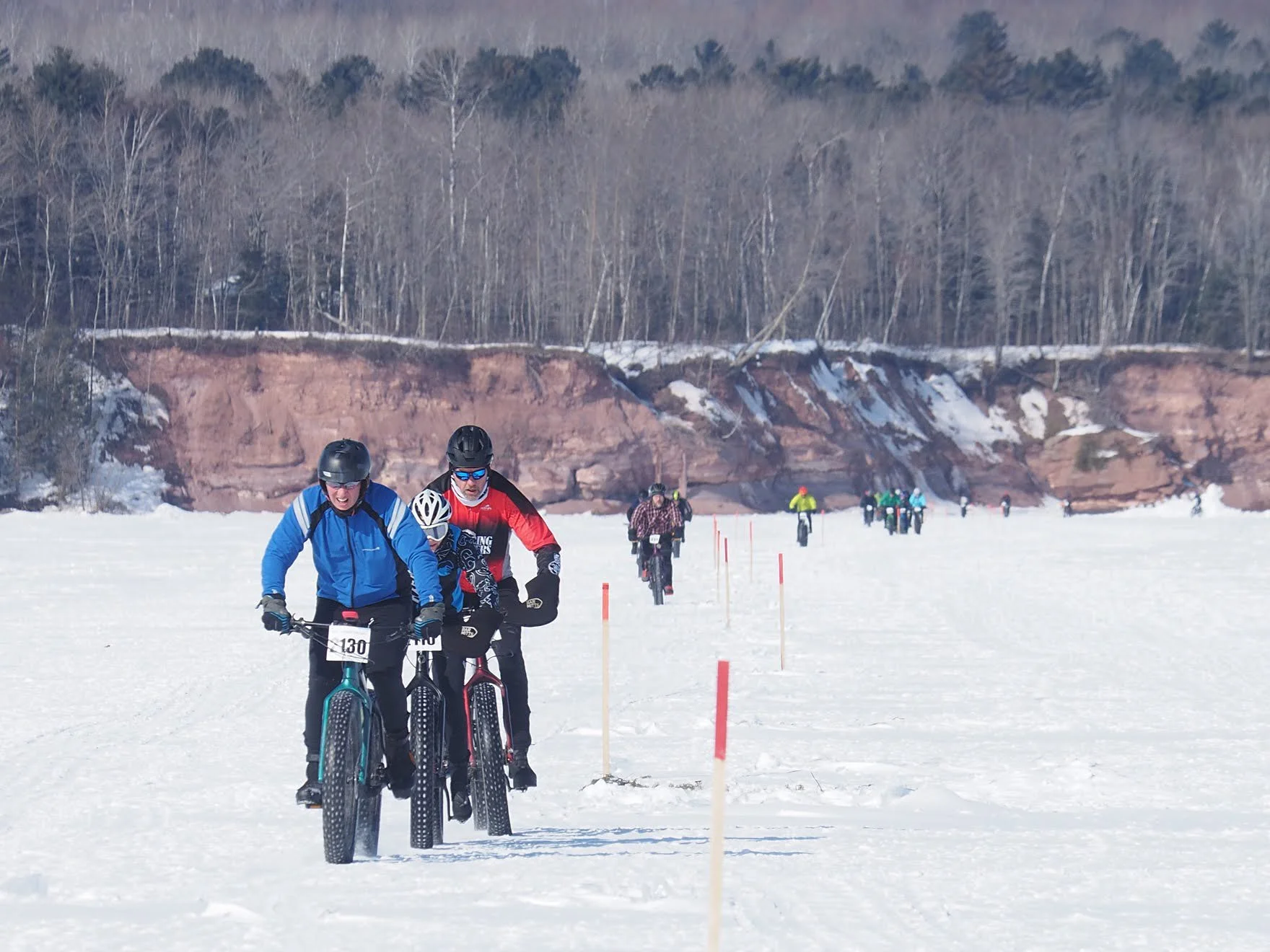 This is a winter race on Ice and does have inherent hazards. People with pre-existing health concerns or improper equipment should not consider this a race for them. The minimum tire recommendation is a 3.5" tire. Studs are strongly recommended for safety and usability on a course that could be snow covered or glare ice. We will attempt to keep registrants posted of the ongoing weather and course conditions prior to the race. Helmets and signed waivers are required to race.